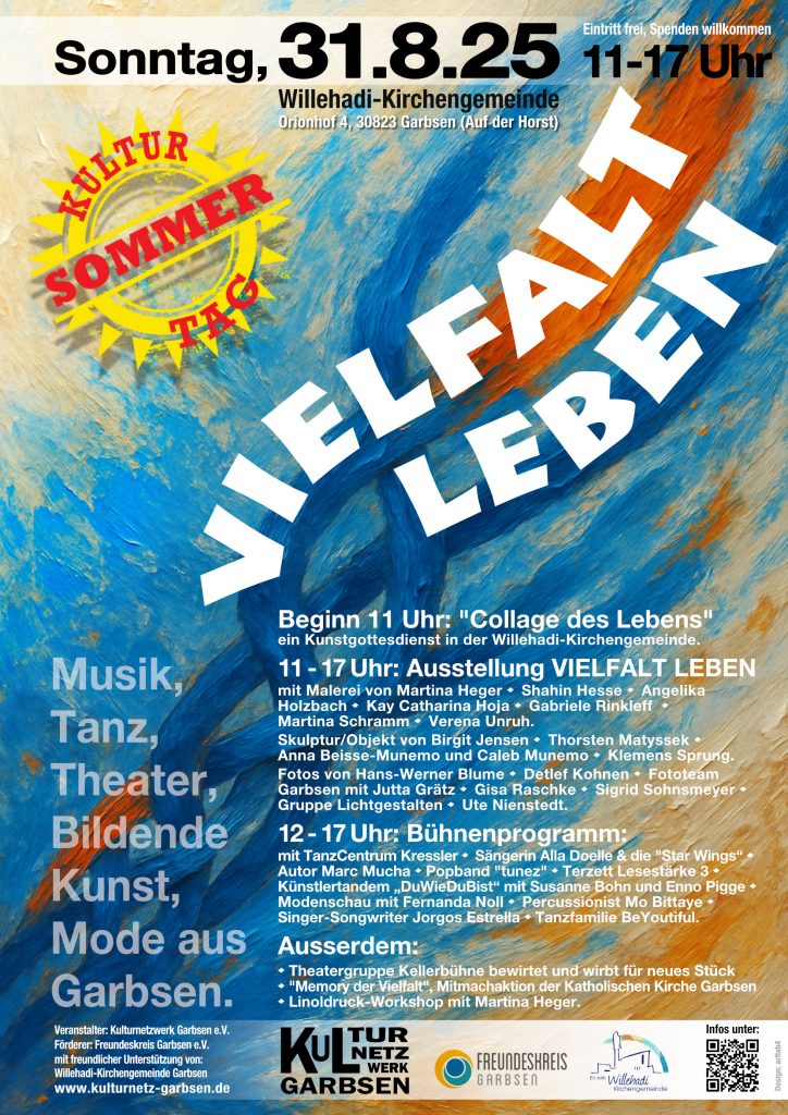“Wir wollen an diesem Tag zeigen, wie facettenreich die Kulturszene in Garbsen ist”, so die Veranstalter. “Und Menschen zusammenbringen und sie mit Kunst, Musik und Theater inspirieren. Wir freuen uns sehr, dass die Willehadi-Gemeinde die Veranstaltung als Kooperationspartner unterstützt, besonders im Jahr des 60-jährigen Bestehens des Stadtteils Auf der Horst.”